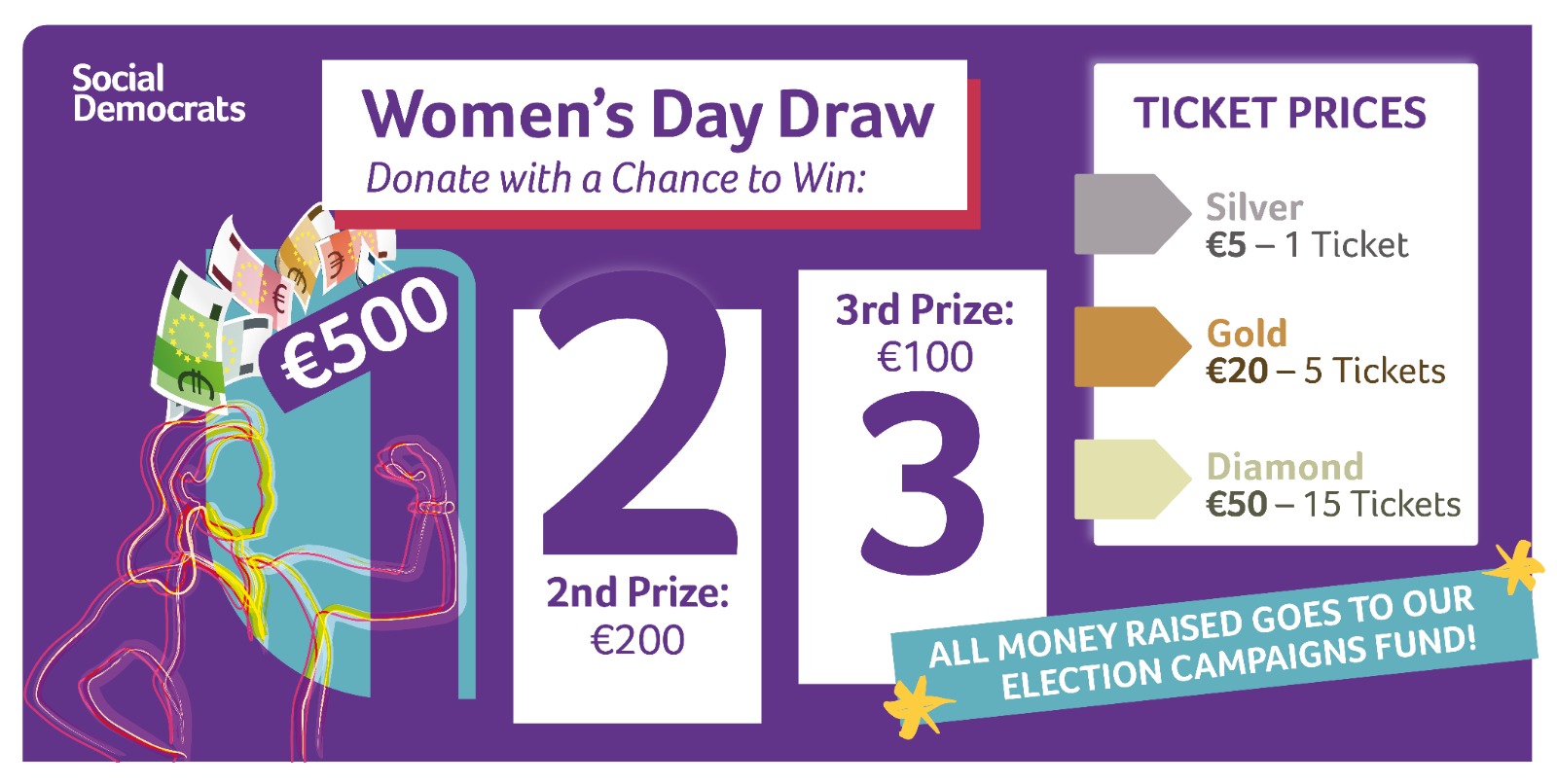 Help make your Chrismas Dreams come true with a chance to win 1 of 3 great cash prizes in our first ever public National Draw! All funds raised will contribute to our mission to field progressive candidates in every constituency and win, bringing a fairer, functional future for Ireland.